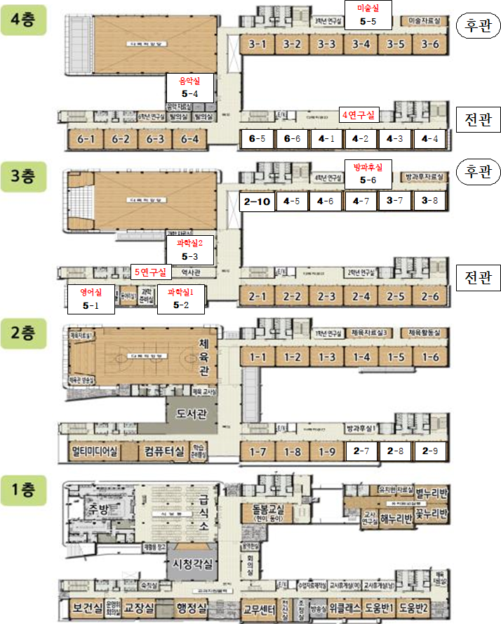 2020학년도 교실(임시) 안내도를 다음과 같이 안내하오니 꼭 확인하여 개학시 혼동이 없으시길 바랍니다.