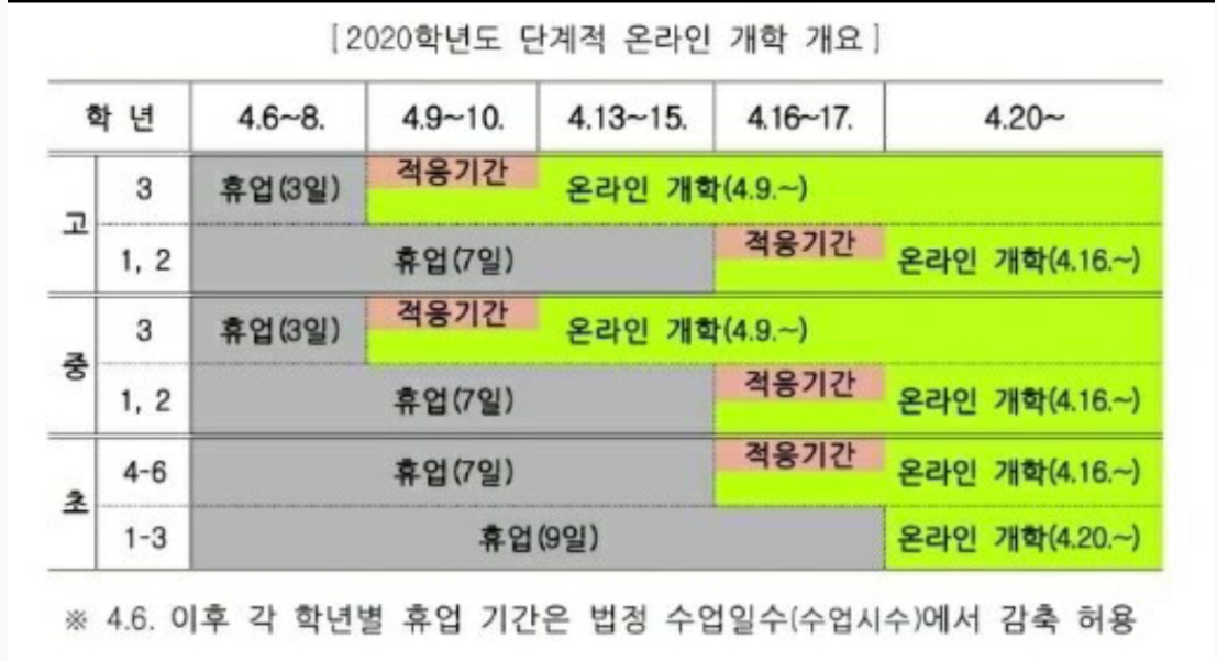 학부모님 안녕하십니까. 단계적 온라인 개학 일정에 대해서 안내드립니다.