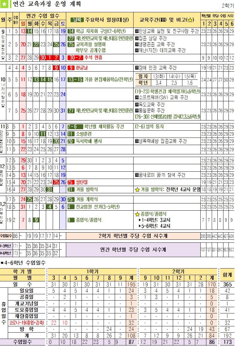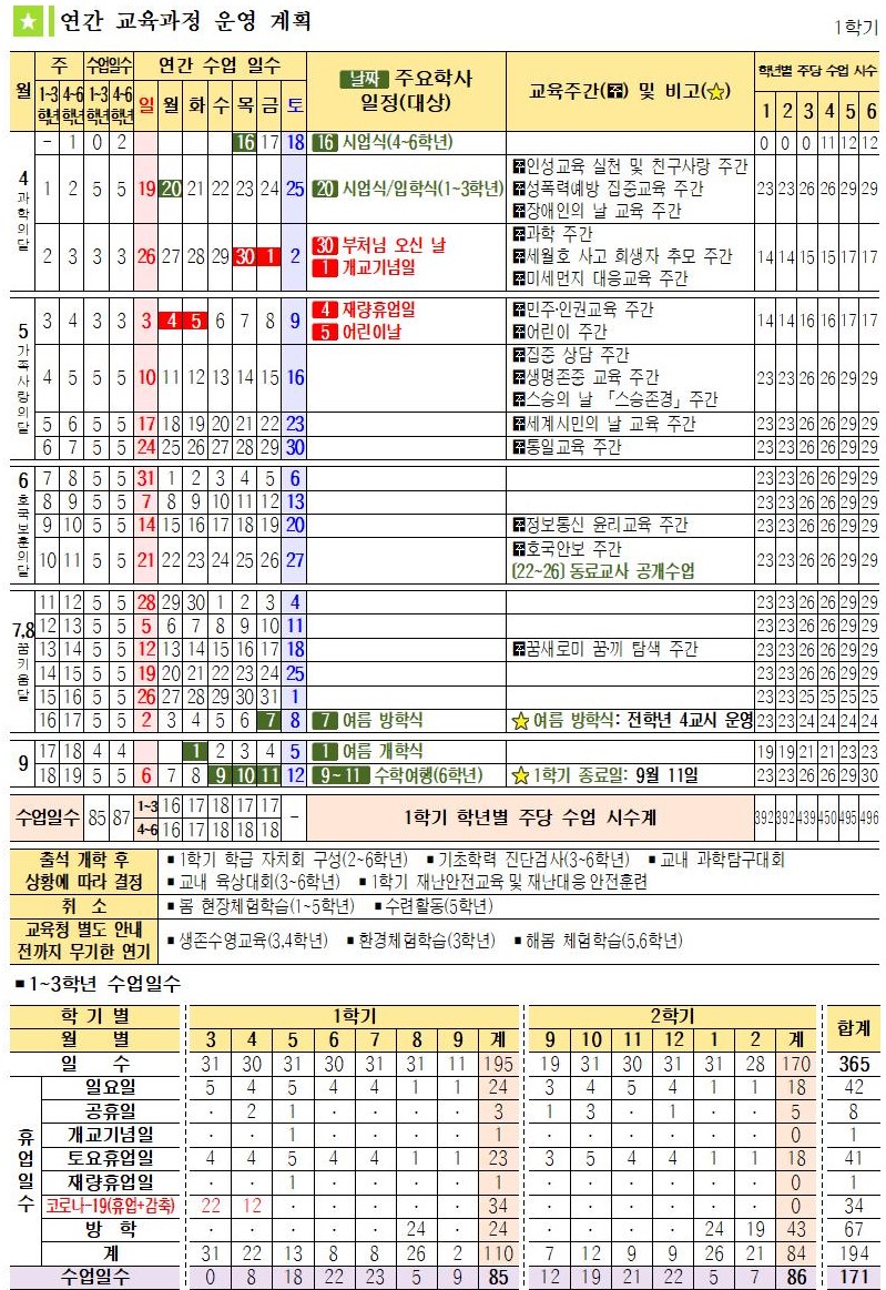온라인 개학에 따른 2020.연간학사일정 안내