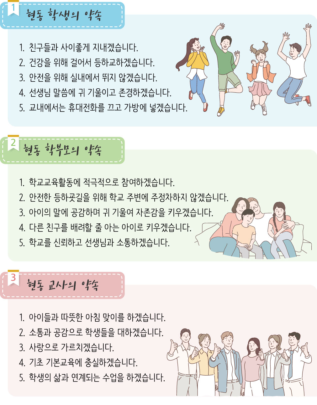 함께 정한 약속을 잘 지켜서 소통과 공감으로 행복한 학교 문화를 만들어 갑시다.