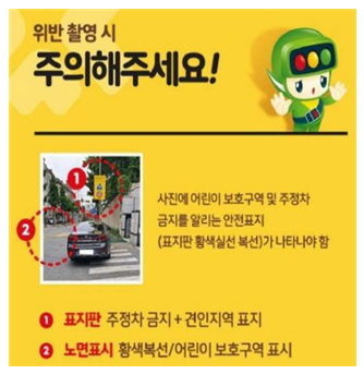 ※ 어린이 보호구역 불법 주정차 단속요건(구역, 시간 등)은 각 지자체의 행정예고에 따라 일부 다르게 운영될 수 있음