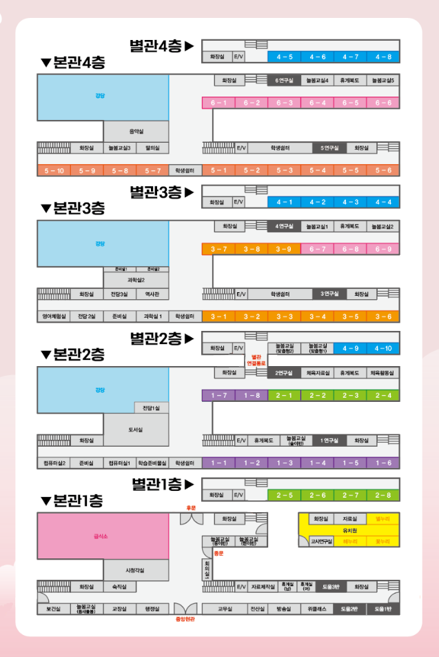 ※ 별관으로 가는 구름다리는 2층에만 있습니다. (후관 2층 > 별관 연결)
